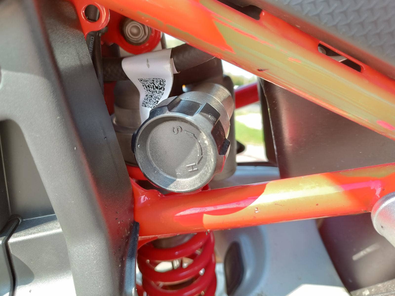 Zadní odpružení Kayaba monoshock naladěný na off-road, plně nastavitelný, zdvih kola 240 mm. Přední brzda Dvojitý plovoucí kotouč? 300 mm. Brzdové třmeny Brembo