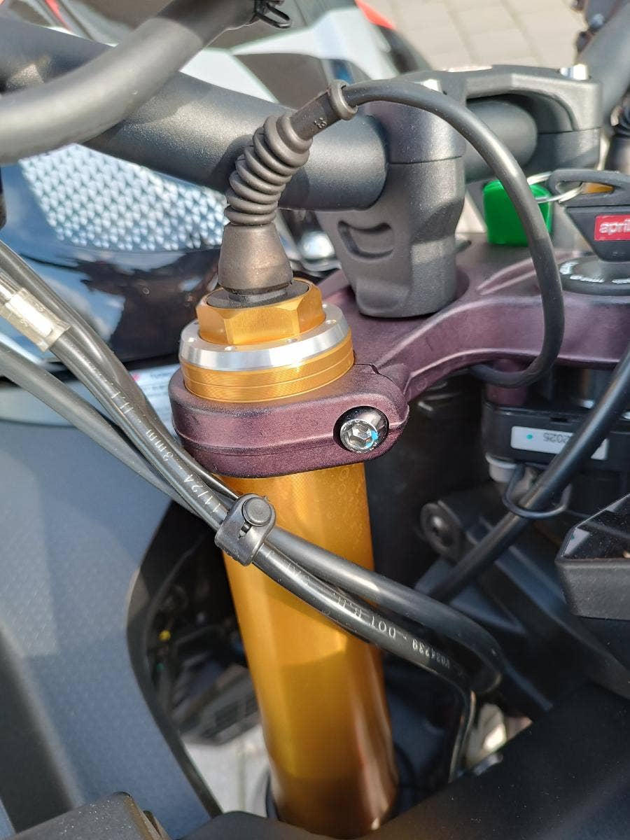 (ASC). Öhlins electronically controlled steering damper. Metal Braided