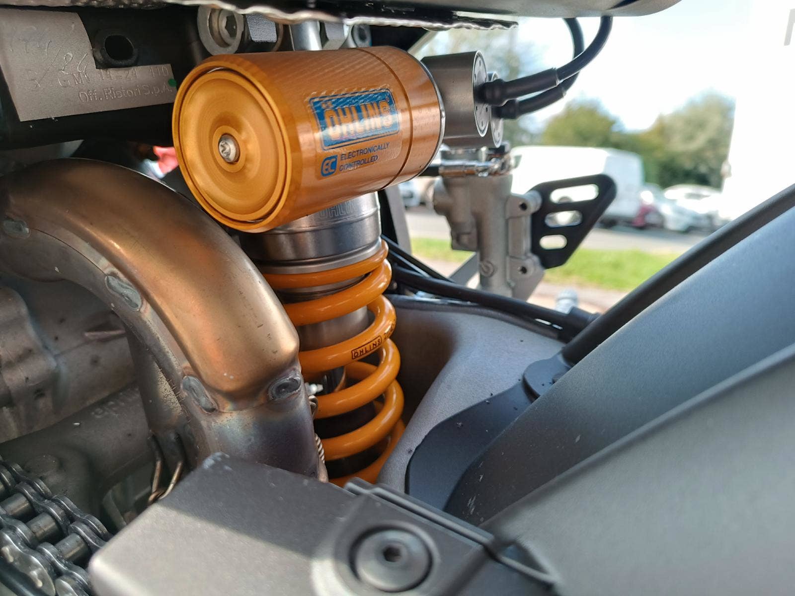 front suspension Öhlins 43 mm electronically controlled USD fork, fully adjustable, 120 mm wheel travel