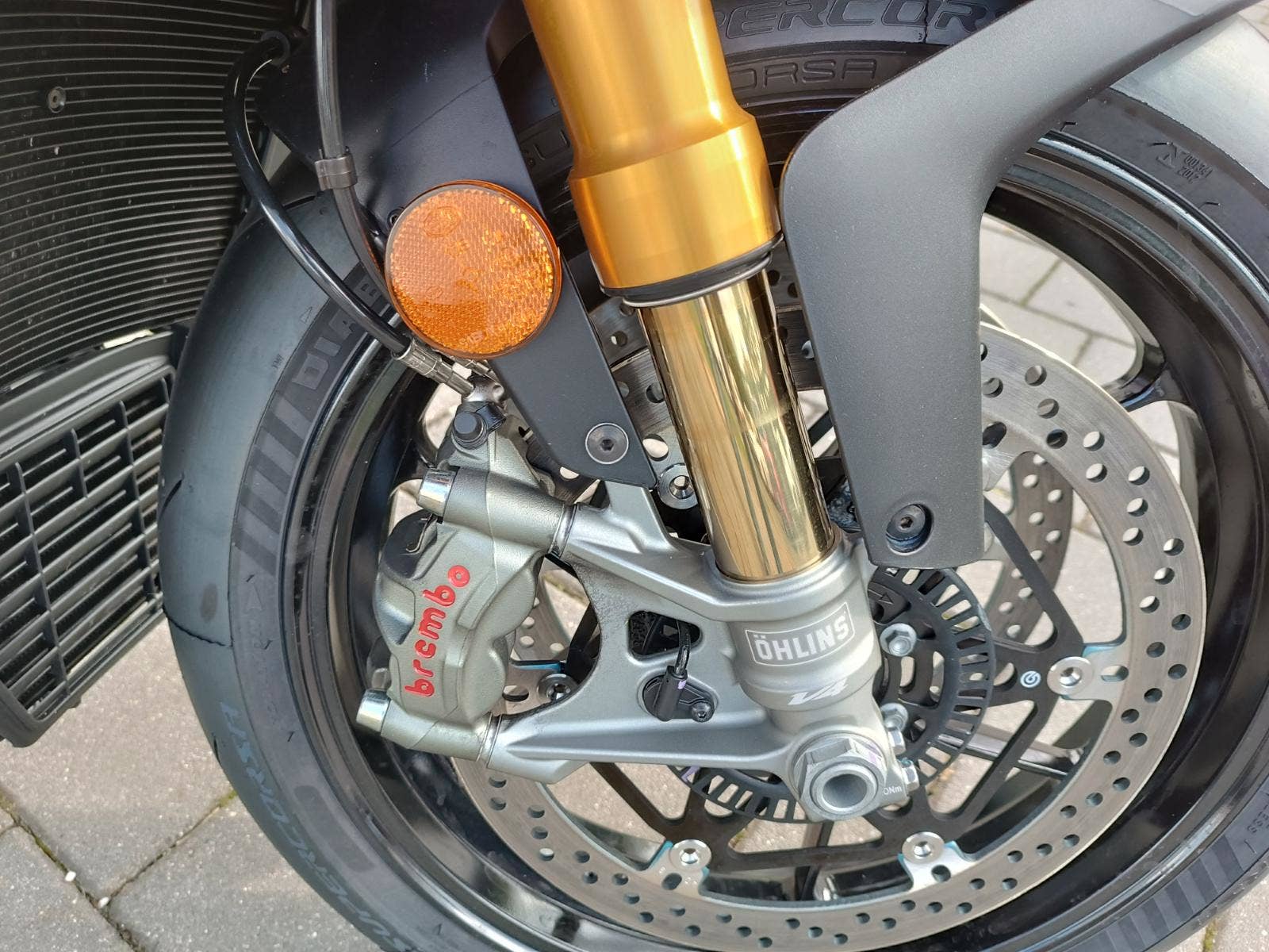 front brake Double 330 mm floating disc. Brembo radial calipers