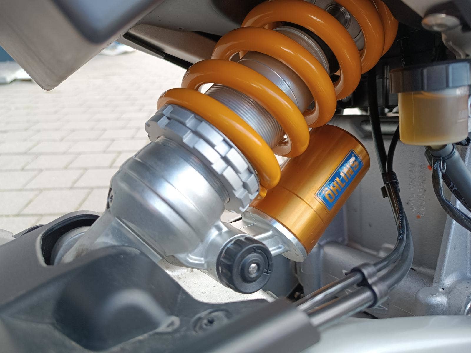 Přední odpružení Vidlice Kayaba Ø 41 mm USD, nastavitelný odskok a předpětí, zdvih 120 mm