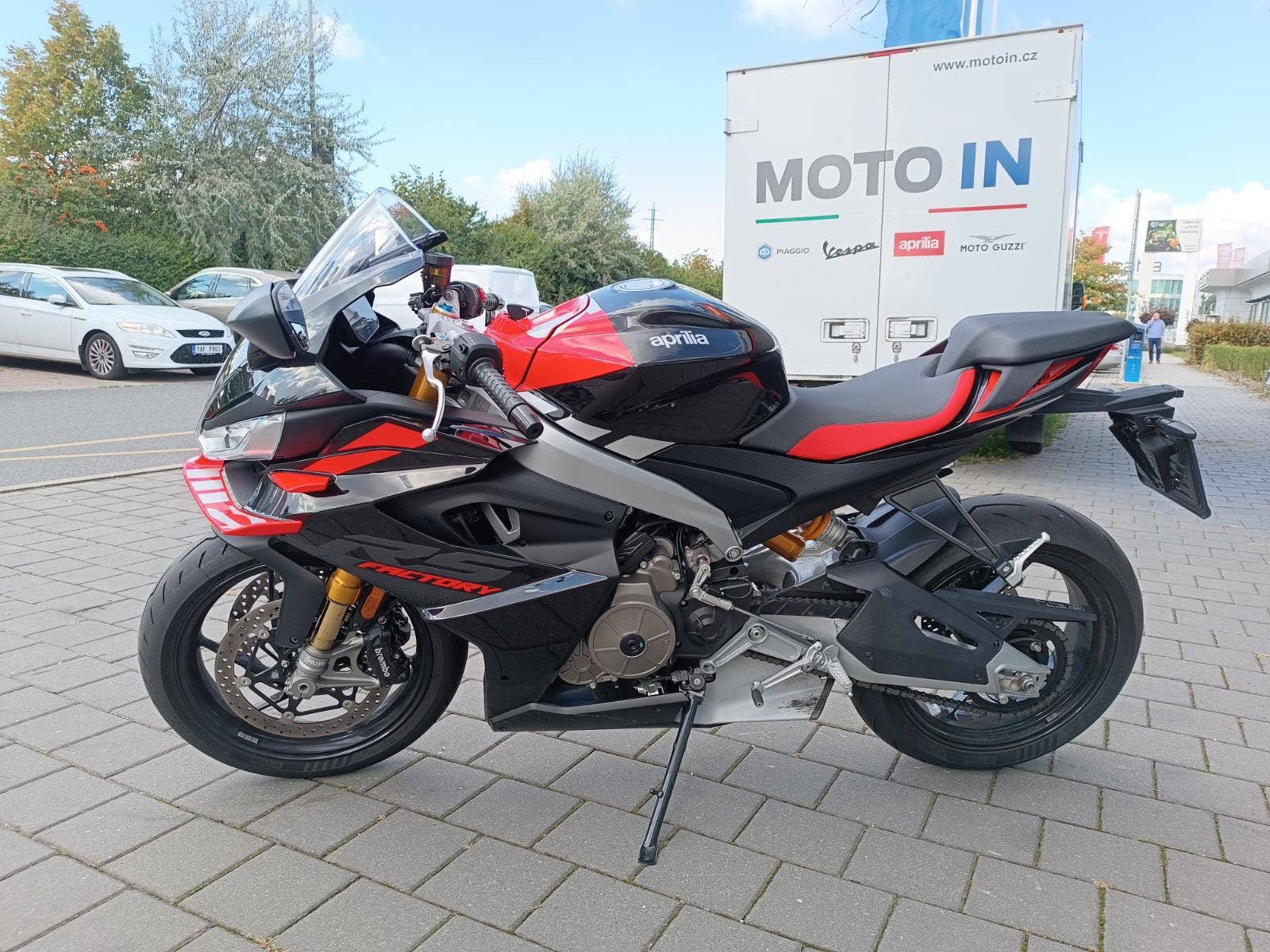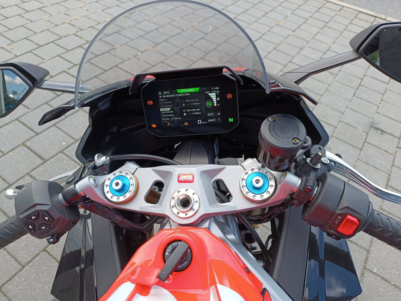 Full LED světlomety a směrovky se světelným podpisem. Lepený 5“ TFT přístrojový panel. Podsvícené ovladače. Systém APRC se 6osou inerciální jednotkou: (AEM), motorová brzda (AEB), náklonové ABS (3 mapy a zmírnění zdvihu zadních kol), kontrola trakce (ATC), systém anti-wheelie (AWC), Aprilia Launch Control (ALC), 5 jízdních režimů. Tempomat (ACC). Aprilia Quick Shift (AQS). Kovové opletené brzdové hadice
