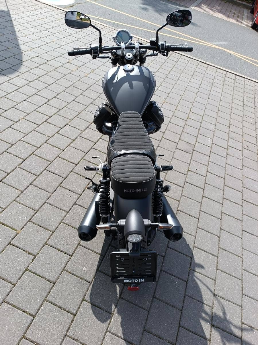 Inovativní, agresivní, naprosto neodolatelná a impozantní osobnost modelu V9 se projevuje v typickém stylu Moto Guzzi s vrozenou čistotou designu. Ta je vyjádřena hřídelovým pohonem, ocelovou karoserií a velkolepými pneumatikami. Mistrovské dílo designu, jehož pečlivou pozornost věnovanou detailům nelze přehlédnout, zatímco hojné použití vysoce kvalitní oceli a hliníku stojí za rámem, který zajišťuje lepší ovladatelnost a stabilitu.