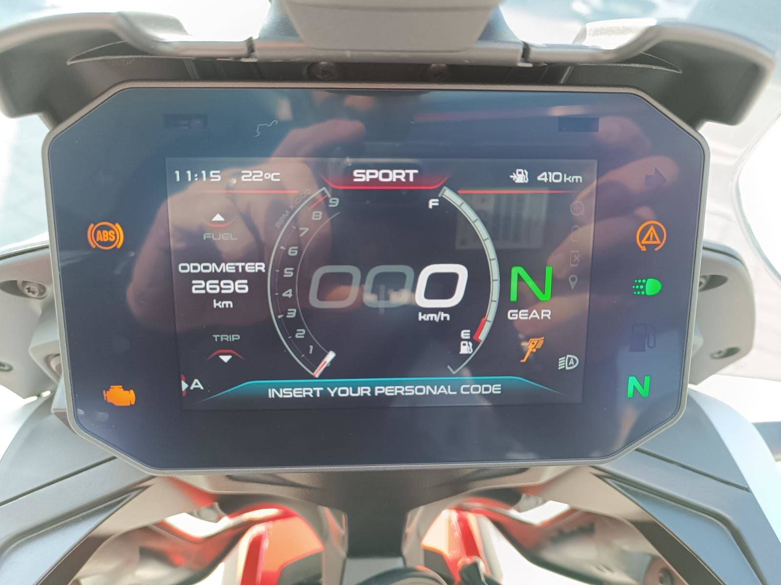Výbava Full LED světlomety s DRL, LED směrovky, náklonové ABS a kontrola trakce, tempomat, 5 jízdních režimů, plnobarevný TFT přístroj, USB konektor, manuálně nastavitelný čelní štít