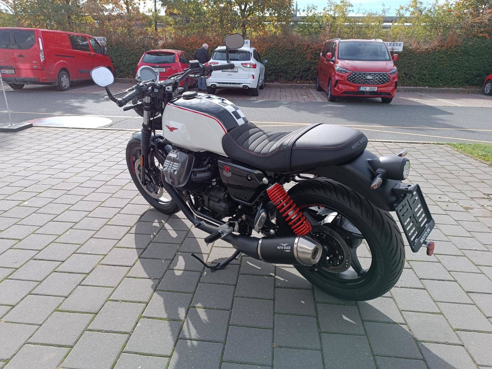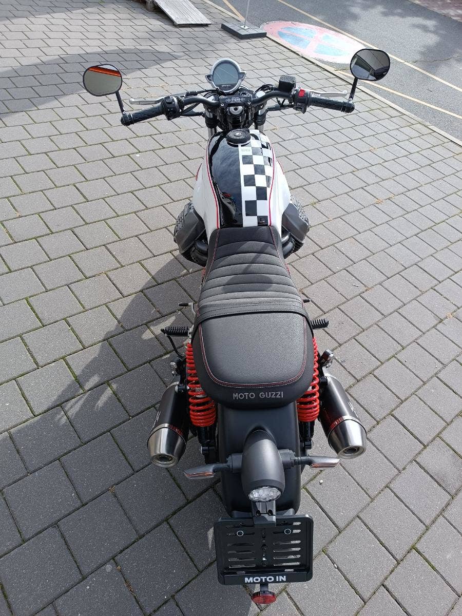 Výbava Kompletní sada LED světel s DRL, LCD přístrojový panel, kontrola trakce MGCT Moto Guzzi, standardní dvoukanálové ABS, speciální tlumič výfuku Arrow, zrcátka na konci řidítek, CNC obráběné víčko palivové nádrže, černě eloxované kryty vstřikovačů, na zakázku vyrobený štítek na řídítka.