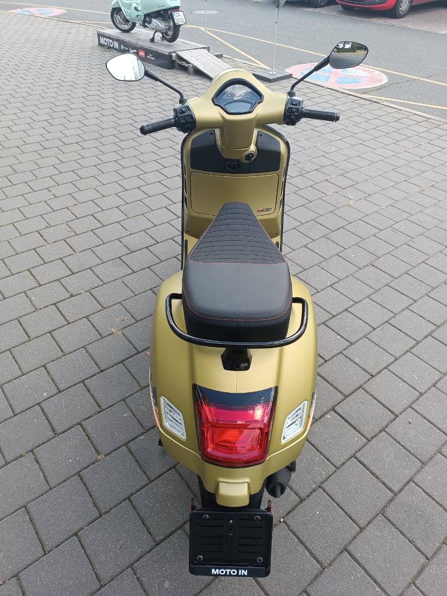 Vespa Gts SuperSport ohromí paletou matných a zářivých barev v kombinaci s karbonovými detaily a lesklými černými povrchy. Její odvážnou osobnost dále podtrhuje sedlo z vysoce kvalitního materiálu s kontrastním prošíváním. Když se na Vespě Gts SuperSport vydáš na cestu, i ten nejobyčejnější den se promění ve vzrušující dobrodružství.